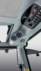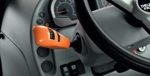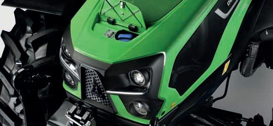 Nowoczesna, przestronna kabina ze smukłą, czterosłupkową konstrukcją i pochyloną pokrywą silnika zapewnia doskonałą widoczność we wszystkich kierunkach, a maksymalnie 4 przednie światła robocze i 2 tylne światła robocze (dostępne również z technologią LED) umożliwiają pracę w nocy. Aby zapewnić komfort użytkowania kabiny, jest ona wyposażona w regulowaną kolumnę kierownicy i wygodny fotel operatora, który jest również dostępny z amortyzacją pneumatyczną. Niski poziom hałasu, najwyższej jakości materiały wykończeniowe oraz ergonomicznie rozmieszczone elementy sterujące i przyrządy sprawiają, że kabina stanowi idealnie komfortowe środowisko pracy. Nowy uchwyt na telefon i liczne schowki na drobiazgi w kabinie sprawiają, że codzienna praca jest jeszcze prostsza i wygodniejsza. Dla jeszcze większej wszechstronności oferowany jest wybór dwóch wersji dachu. Smukłe kształty standardowego dachu nadają ciągnikowi zwarty profil, idealny do pracy w oborach lub przy specjalistycznych uprawach (takich jak winnice, sady owocowe lub chmiel), podczas gdy dach o wysokiej widoczności, który jest również dostępny w wariancie ze strukturą FOPS, jest idealny do pracy z ładowaczem czołowym i do zastosowań leśnych. Odpowiedni przepływ powietrza zapewniają otwierane przednie i tylne szyby, a wydajna klimatyzacja dba o optymalny poziom temperatury we wnętrzu w każdych warunkach. Dzięki nowej desce rozdzielczej InfoCentre+ z 3,5-calowemym wyświetlaczem LCD o wysokiej rozdzielczości, operator uzyskuje czytelny podgląd na wszystkie istotne informacje. Wszystkie sterowniki, dźwignie, pokrętła czy przyciski zostały oznaczone zgodnie ze schmatem kolorystycznym stosowanym w pozostałych ciagnikach marki DEUTZ-FAHR. Kolor pomaranczowy to sterowanie napędem, zielony podnośnikiem, żółty WOM a niebieski hydrauliką. Wszystkie ważne sterowniki rozmieszczono w sposób ergonomiczny w zasięgu ręki operatora. Może on dzięki temu swobodnie sterować ciągnikiem, zachowując przy tym pełne bezpieczeństwo.
