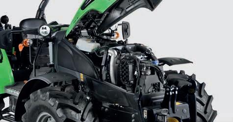 conjunto de soluciones que también contribuye a reducir al mínimo el consumo de combustible. DEUTZ-FAHR ha diseñado magistralmente el sistema de postratamiento de los gases de escape para que no afecte a las dimensiones totales del tractor y poder mantener la baja altura del capó y de los guardabarros traseros.