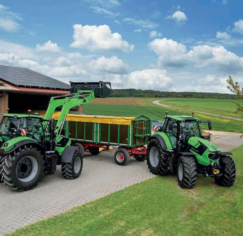 Die Modelle der Serie 6 decken einen Leistungsbereich von 161 bis 230 PS ab. Neben ihrer unübertroffenen Vielseitigkeit, Produktivität, Zuverlässigkeit und Kraftstoffersparnis bieten diese Traktoren auch ein sehr hohes Maß an Komfort. Angetrieben werden die Traktoren von effizienten Sechszylindermotoren, die unter modernen Motorhauben mit futuristischem DEUTZ-FAHR Design arbeiten. Die verschiedenen Modelle bieten eine Auswahl an verschiedenen Getriebetechnologien, die alle mit dem weithin geschätzten PowerShuttle mit den üblichen 5 Intensitätsstufen ausgestattet sind. Bei niedriger Motordrehzahl können Höchstgeschwindigkeiten von bis zu 60 km/h erreicht werden, was bei Transportaufgaben und Straßeneinsätzen den Kraftstoffverbrauch und Verschleiß reduziert. Funktionen wie Stop&Go (RCshift-Modelle) oder PowerZero (TTV-Modelle) erleichtern Ihre Arbeit und unterstützen Sie entscheidend. Mit kompakten Abmessungen, optimalem Leistungsgewicht, hervorragender Übersicht und großem Lenkeinschlag eignen sich diese Modelle perfekt für eine Vielzahl von Einsätzen, auch für solche mit Frontlader. Die leistungsstarke Load-Sensing-Hydraulikanlage, die bis zu 210 l/min liefert und über bis zu 5 Hecksteuergeräte verfügt, macht diese Maschinen ideal für alle täglichen Aufgaben.