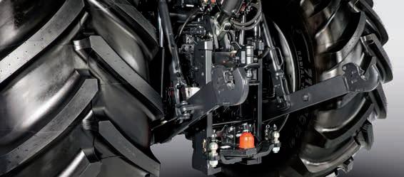 > Integrated front linkage with 5450 kg lift capacity and DualSpeed front PTO
