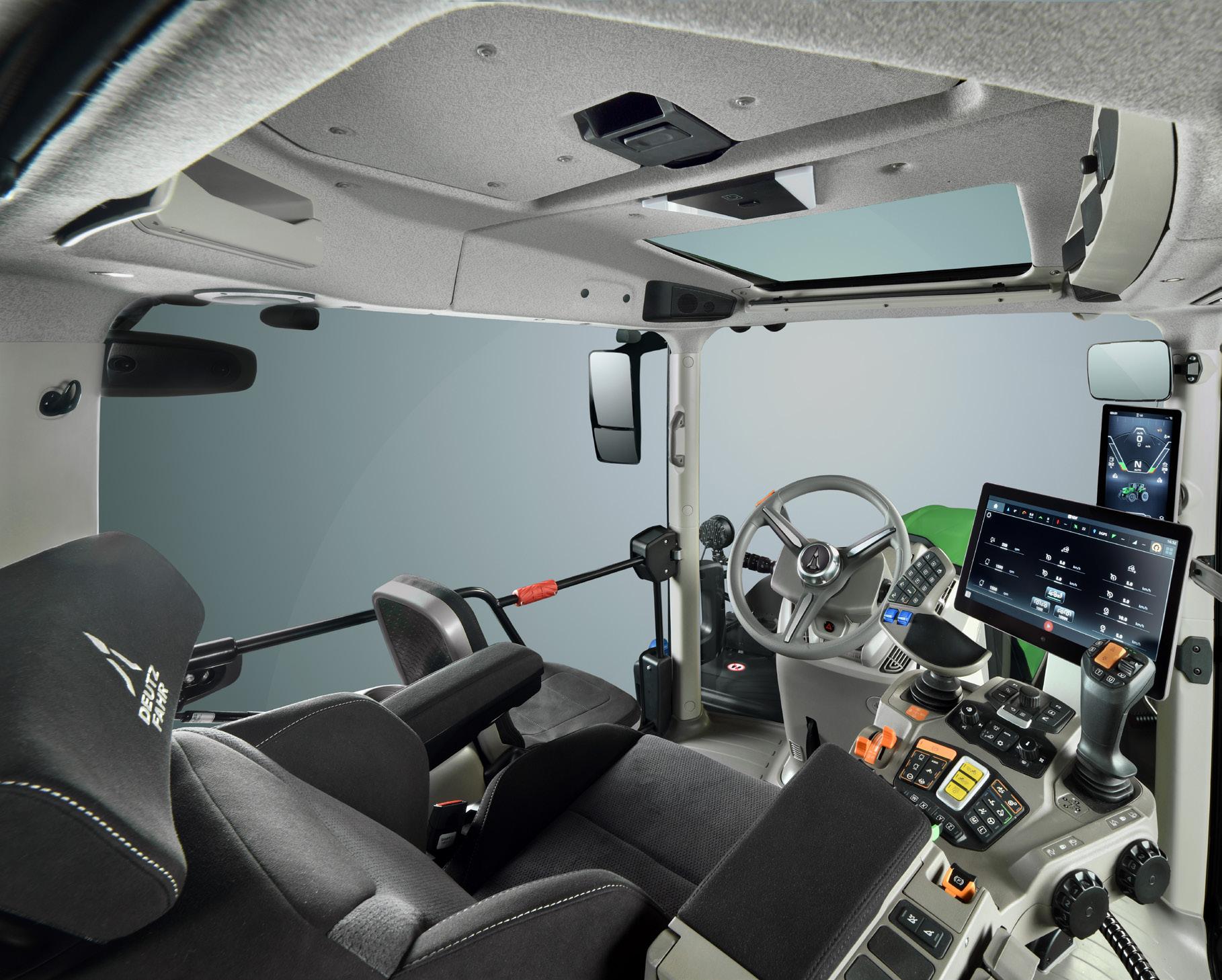 Le nouvel accoudoir iControl intègre des commandes MMI intuitives ainsi que deux joysticks ergonomiques multifonctions : le joystick iMotion, doté de plusieurs boutons programmables à souhait pour offrir davantage de contrôle, et le joystick CrossLever intégrant une nouvelle gestion des fonctions pour des manipulations précises, intuitives et personnalisables. Deux écrans numériques haute résolution – un de 15 pouces iCluster leader du marché sur le montant A et un iMonitor 5 de 12,8 pouces sur l’accoudoir iControl – offrent une expérience de conduite entièrement numérique, en fusionnant les données de la machine, les fonctions de guidage et les réglages de confort dans une interface intuitive. Le nouveau iSystem permet une intégration transparente des SDF Smart Farming Solutions, notamment Auto Guidance, ISOBUS, XTEND et le système de télémétrie. Le système prend en charge l’intégration d’une caméra numérique et est préconfiguré pour le système DEUTZ-FAHR TAGS (Tractor Assisted Guidance System).
