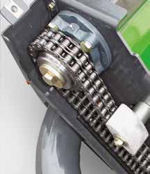 Der Schutz für den zuverlässigen Keilriemenantrieb gewährleistet einen sanften Anlauf der Maschine. Dank großer Lager und Achsen kann der Keilriemenantrieb 30 Prozent mehr Leistung übertragen als die Vorgängermodelle.