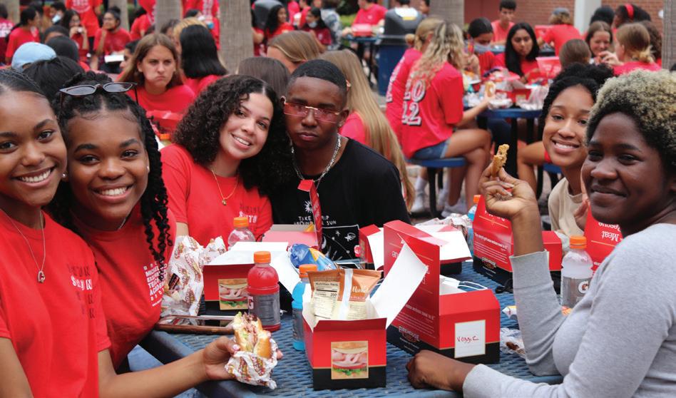 banner, students were crowned as seniors with a Firehouse Subs catered lunch and interactive games like badminton and cornhole. Virtual students were also able to return to campus for this special event alongside their in-person classmates, enjoying this frst step in moving on and accepting their title as the upcoming senior class.