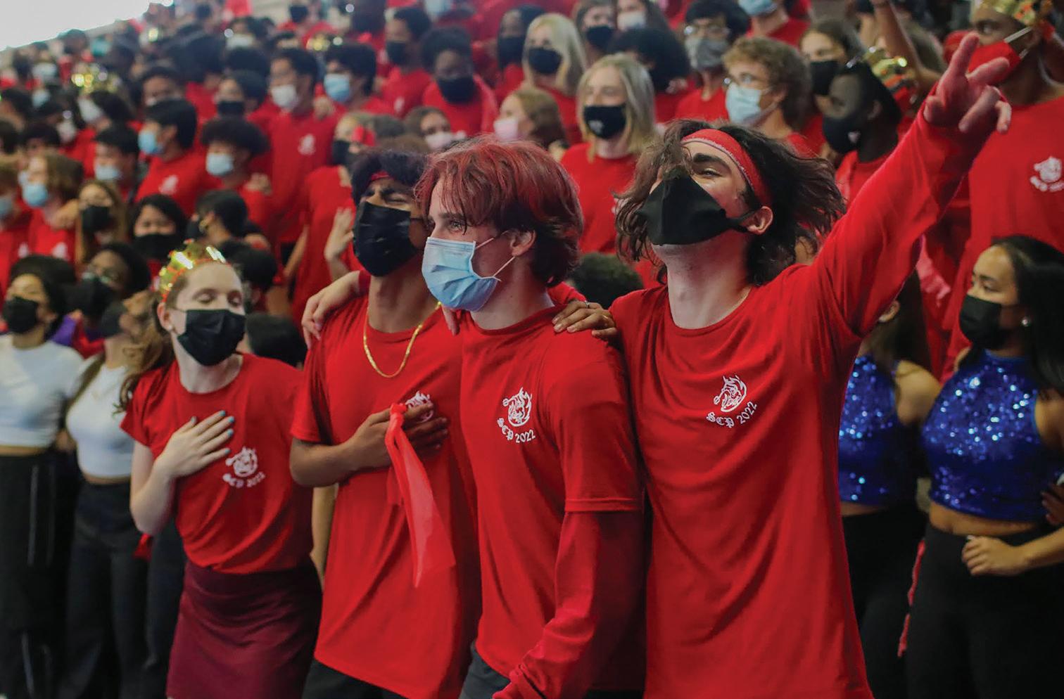 Stanton’s Class of 2022 has competed in various pep rallies over their four years. While all of them were not successful, their s hool spirit shined d ring these e ents. he entire atmosphere surrounding pep rallies changed after they were halted because of the coronavirus, but seniors remember fondly the excitement created by their earlier pep rallies li e those in their reshman year. hey have had their ups and downs in these competitions, but the senior class made the best of their situation and still put up a respectable fght against Stanton’s other lasses in their red memorabilia.