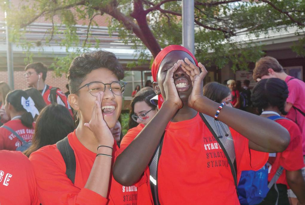 In a wave of red class t-shirts and anticipatory faces, the Class of 2022 “took over” the senior courtyard of Stanton College Preparatory School at the end of the 2020-2021 school year. In an introduction for their student body, students were inducted into their new lunch territory, claiming it from the Class of 2021. Welcomed by a student-produced