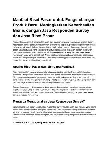 Manfaat Riset Pasar untuk Pengembangan Produk Baru: Meningkatkan Keberhasilan Bisnis dengan Jasa Res