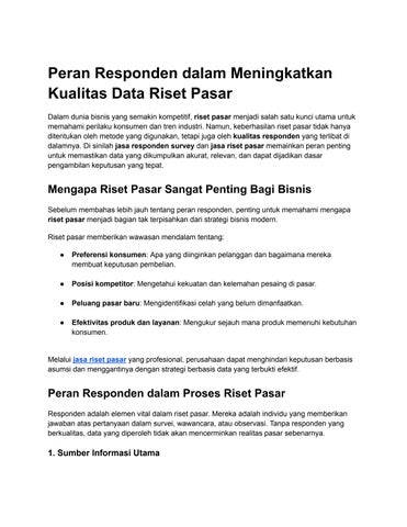 Peran Responden dalam Meningkatkan Kualitas Data Riset Pasar