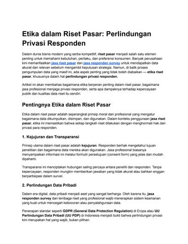 Etika dalam Riset Pasar: Perlindungan Privasi Responden