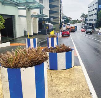 Board deputy chair Terence Harpur said not only should the planter pots go, the coloured paint on the road which was part of the same project should be removed and angle parking restored.