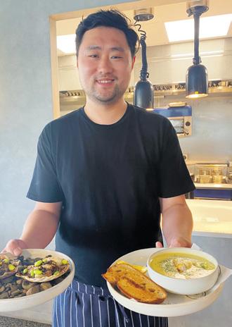 Eat up... Chef Oliver Hue with his seafood chowder and scallop and noodle dish at recently opened St Marée