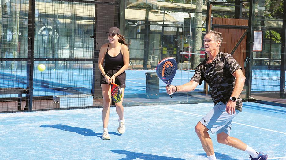 New game in town… About 75 players tried out padel at the official opening of three courts on Takapuna’s town square last weekend. Sara Lopez and James Brown (above) were semifinalists in Pacific Padel’s opening-day tournament won by Jorge Goikoetxea and Howard Cliffe.