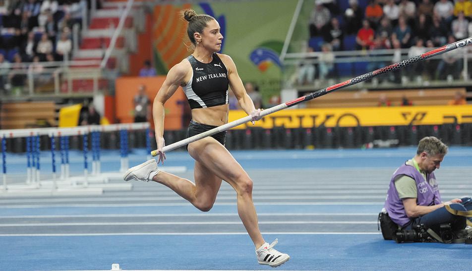 In the medals... Local product Imogen Ayris in action at the World Athletics Indoor Championships in Poland, where she won bronze in the women’s pole vault. Story, page 7.