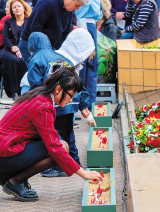Veterans along with representatives from local schools and other organisations were to the fore as Anzac Day was marked with a wellattended traditional commemoration in Takapuna. Cool but dry conditions prevailed until the laying of wreaths, when rain fell for a few minutes.