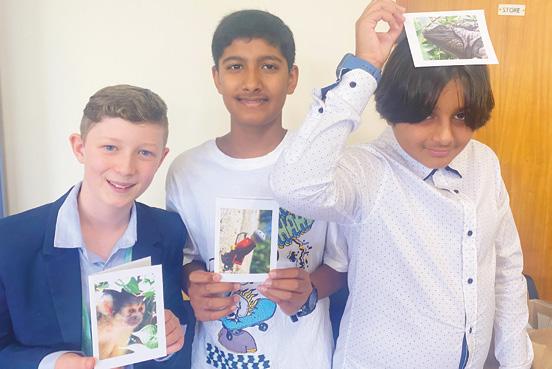 Young entrepreneurs... Wairau intermediate School friends (from left) Hayden Fish, Hashy Hussein and Shayan Dogar, all aged 12, with cards from their Fishy Photo Snap business