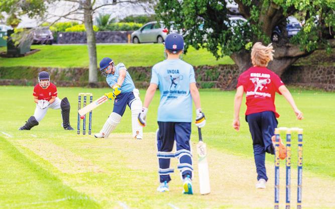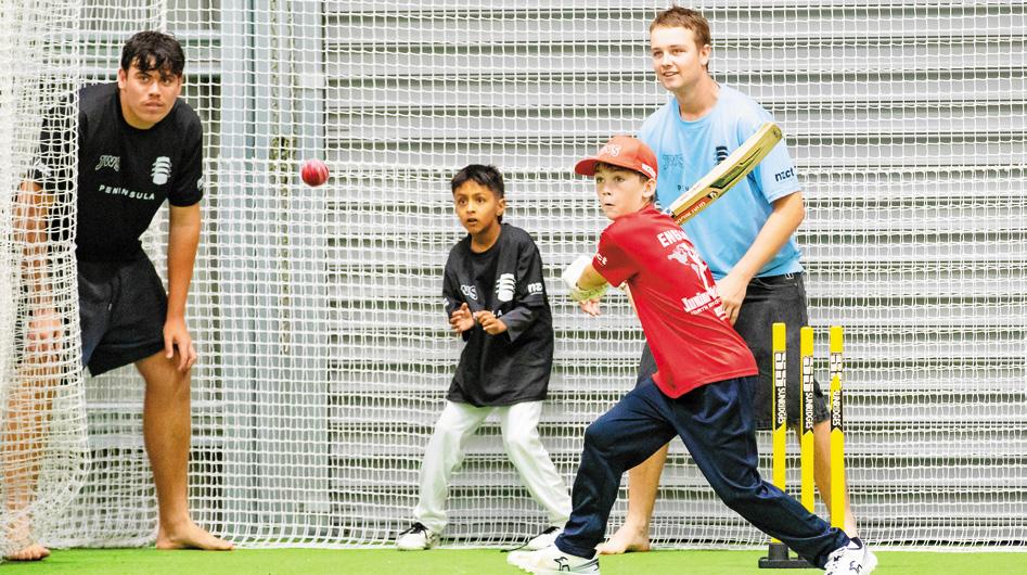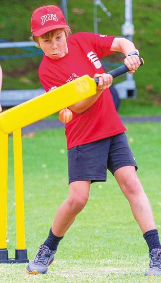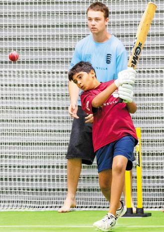 Eye on the ball... Belmont boy Luke Evans (11) lines up a shot at North Shore Cricket Club’s annual kids’ World Series cricket competition last week. Poor weather forced some play into Takapuna Grammar School’s Bert Sutcliffe indoor sports facility. More pictures, pages 10-11.