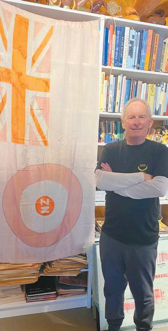Flag fan... Grant Alexander in his Devonport home studio, with a military ensign he bought because he found its design interesting