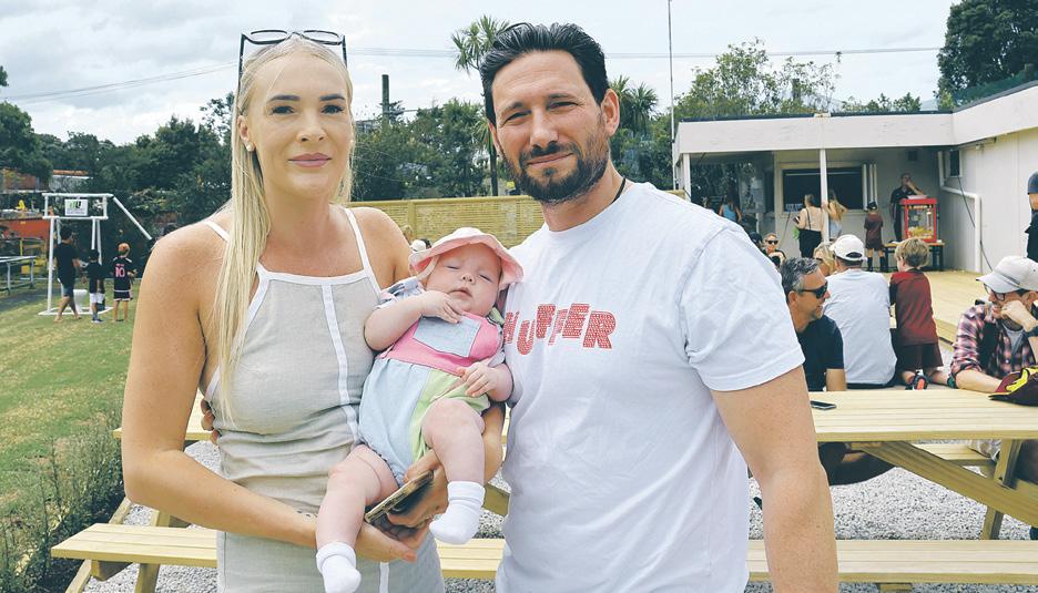 Wake me up when it’s over... Three-month-old Lily McMillan, with parents Zoe and Cory, took a relaxed approach at the opening of North Shore United’s refurbished clubrooms and outdoor area. Story and more photos, page 22.