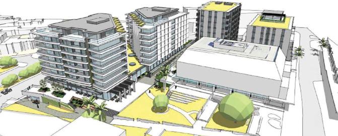 Building up... The proposed complex of four blocks on two sides of the white ASB building on Hurstmere Rd, with Hurstmere Green in the foreground