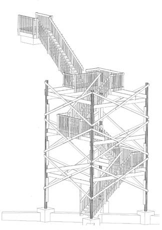 Barber’s design has three flights of stairs within a free-standing frame with foundations in the sand, removing the need for anchors to the cliff.