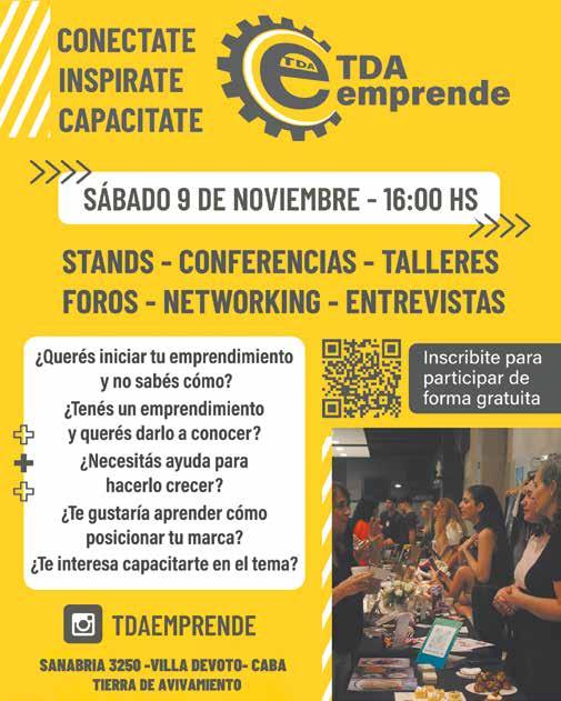 Fecha: Sábado 9 de Noviembre 16 Hs Lugar: Auditorio de Tierra de Avivamiento Dirección: Sanabria 3250 Villa Devoto Informes e inscripción escanenado el QR > Q @tdaemprende