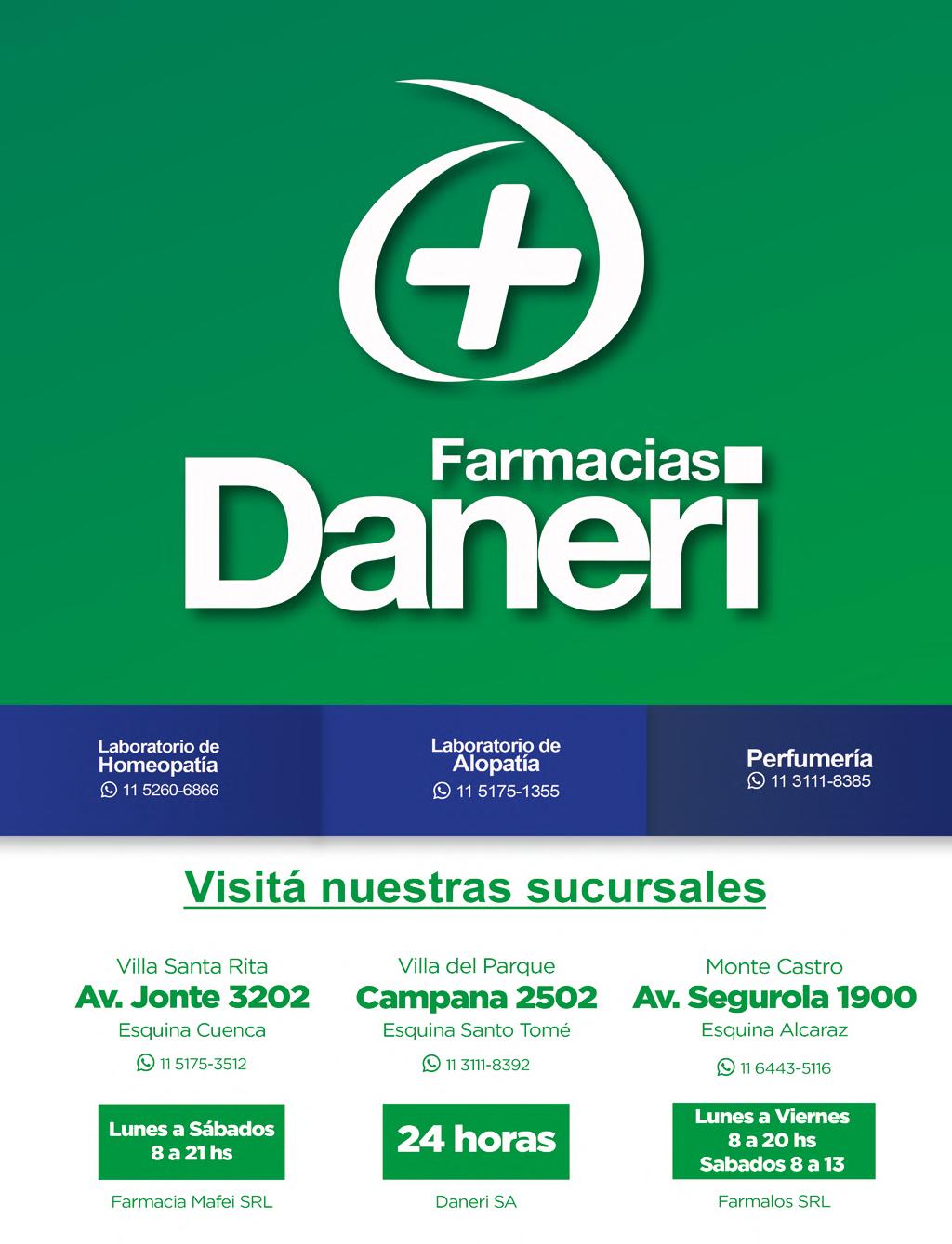 Farmacia Daneri - 24 hs. Campana 2503 L11-3111-8392 www.farmaciadaneri.com.ar