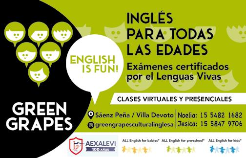 cante para un nuevo año de aprendizaje, crecimiento y experiencias compartidas. En Green Grapes siguen trabajando con el compromiso y la calidez de siempre, formando no solo estudiantes de inglés, sino también una comunidad que aprende, crea y se acompaña. Contáctalos para más información y asegurá tu lugar en Green Grapes.