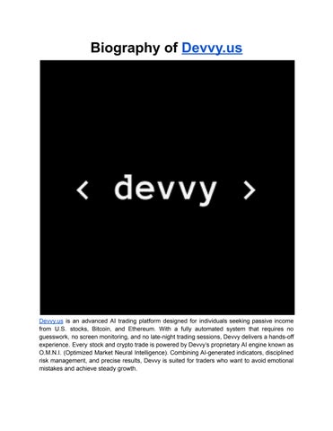 Devvy.us is an automated AI trading platform designed to help users generate passive income by trading U.S. stocks, Bitcoin, and Ethereum without the need to monitor the markets constantly. At the core of the system is the Optimized Market Neural Intelligence, or O.M.N.I., which generates precise buy and sell signals. Devvy’s disciplined risk management and clear trading rules help minimize emotional mistakes and deliver consistent results over time. For over six years, Devvy has been trusted by family offices and high-net-worth individuals who value transparency and steady performance. Its accessible setup makes it especially attractive to people who are new to automated trading but still want professional-grade technology. Theo Miller, Founder and CEO of Eminence Pro, acquired Devvy to extend his vision of democratizing trading tools. Eminence Pro focuses on AI-powered trading in U.S. equities, targeting monthly returns of 3% to 5% while maintaining low drawdowns. The platform connects to SIPC-insured brokers, offers live dashboards, and provides a supportive community. Since February 2024, Eminence Pro has been open to the public, combining technology with philanthropy by donating meals to children in need for each new member through Save the Children, regardless of trading outcomes. Devvy was designed to rise above the noise and hype that often surrounds trading platforms. Its strategy is built on protecting capital first and growing it second, always following strict risk controls and avoiding speculative behavior. Each trade uses a fixed risk-to-reward ratio, keeping potential losses limited and predictable. The platform works through regulated brokers like Coinbase and offers easy onboarding, regular AI updates about every 40 days, and 24/7 customer support. Users receive real-time alerts through Telegram, including trade entries and exits, or can integrate signals into TradingView for added flexibility.