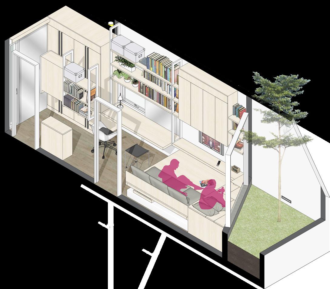 The principle of space in motion progressively results in inclusive spaces that are not only generally compatible for various types of activities but also specifically convertible in a modest and simplistic way to maximize the utilization of limited spaces for different activities. Moreover, the principle of space in motion is relevant in accommodating work/ study-from-home scenarios, especially amid the pandemic, where people are forced to compensate for regular office/ college/school days by working or studying from their homes. Through this principle, the bedrooms as inclusive spaces are able to be converted into three different modes to accommodate three types of activities: sleep, leisure, and work/study.