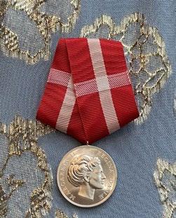 Dronningens Fortjenstmedalje, som Elise fik overrakt den 26. juni på dagen for sit 50-års jubilæum.