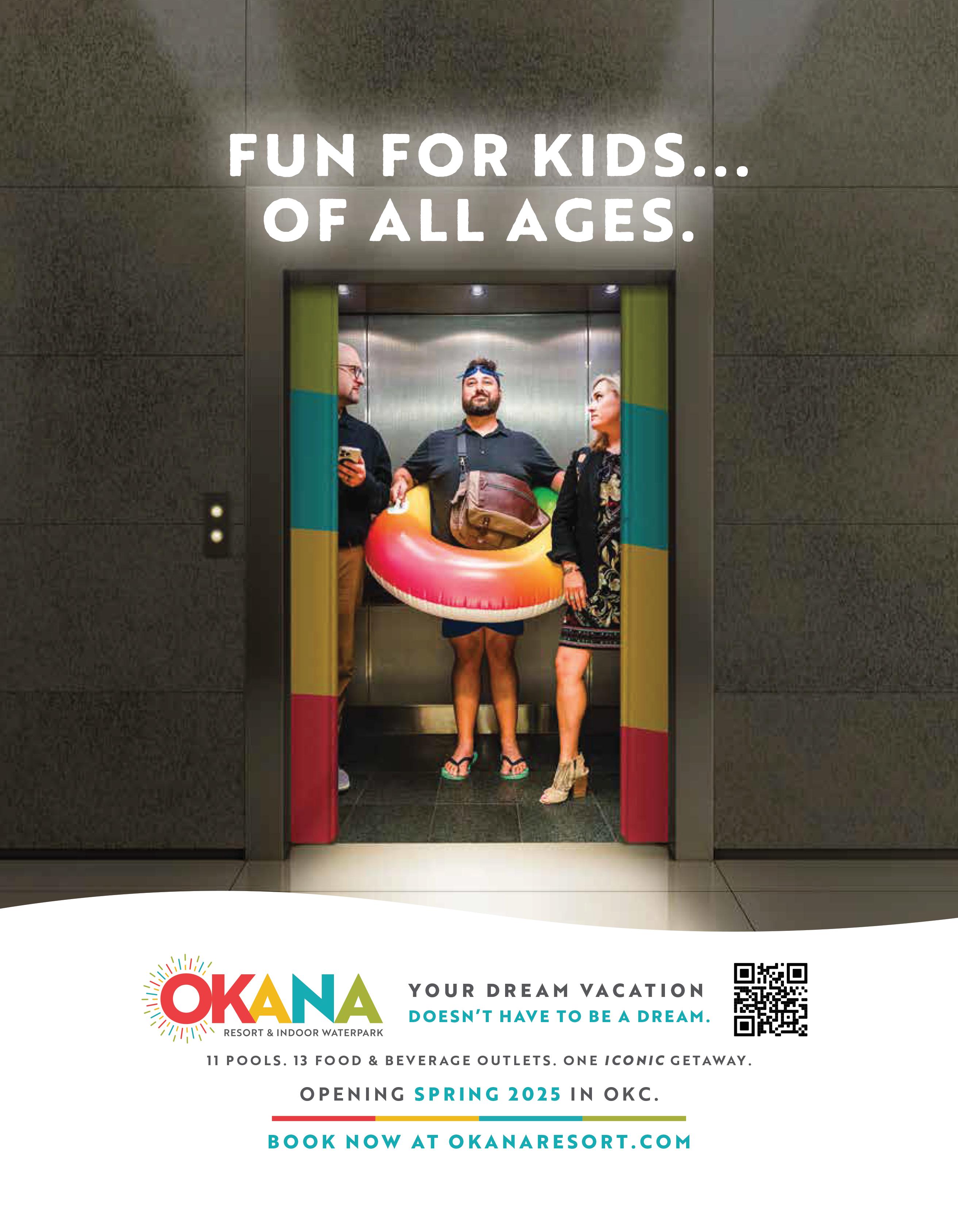 OKANA Resort & Indoor Waterpark will be your new go-to dream getaway with poolside bites, unique swim-up sips and rooms perfect for every kind of stay. Experience the region's largest indoor waterpark in OKC. See ad on page 52.