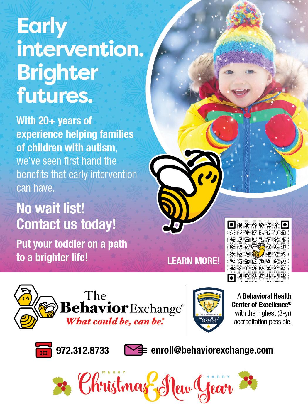 DFWChild is published bimonthly by Lauren Publications, Inc. DFWChild is distributed free of charge, one copy per reader. Only authorized distributors may deliver or pick up the magazines. Additional or back copies are available for $4 per copy at the offices of Lauren Publications, Inc. We reserve the right to edit, reject or comment editorially on all material contributed. We cannot be responsible for the return of any unsolicited material. DFWChild is ©2024 by Lauren Publications, Inc. All rights reserved. Reproduction in whole or part without express written permission prohibited.