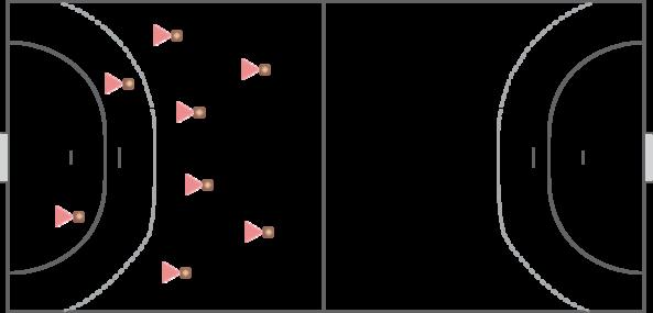 Et område på målcirklen afgrænses af to kegler. Der spilles frit med angreb mellem keglerne, og forsvarernes opgave er at afvise angreb.