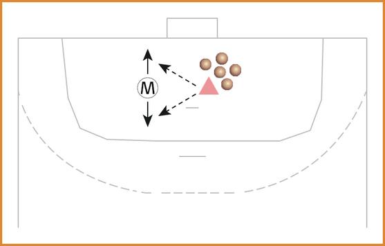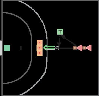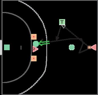 Straks efter modtager angriberen bolden fra tilspilleren og skal angribe i zonen på målcirklen – og ud fra forsvarsspillers aktion skal hun vurdere, hvorvidt der skal skydes eller forsøges indspil til stregspiller.