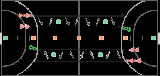 Øvelsens formål er at træne angrebsspillerne i at løbe i høj fart og samtidigt gribe og aflevere med kvalitet