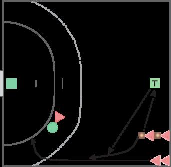 Ved den målcirkel, angrebsspillerne angriber imod, placeres én stregspiller samt én forsvarsspiller. Øvelsen går nu ud på, at backen afleverer til tilspilleren, der med en hurtig igangsætning afleverer retur. Backen skal nu vurdere, om der skal afleveres til fløjspilleren eller til stregspilleren, der er placeret ved målcirklen. Forsvarsspilleren skal vente med at vælge, hvorvidt denne dækker fløjspilleren eller stregspilleren, til det tidspunkt, hvor angrebsbacken modtager bolden fra tilspilleren.