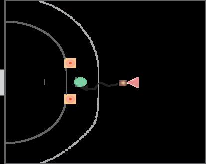 bolden på et område, der er afgrænset af to kegler. Forsvareren skal arbejde på stregen mellem keglerne og skal med gode sidebevægelser afvise angriberen.