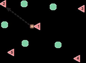 Forsvarsspiller har en afgrænset zone at forsvare. Angriber afleverer til en tilspiller og modtager bolden i bevægelse mod mål. Angriber har en åben udfordring med at løse udfordringen og kommer til afslutning indenfor den opsatte zone. Forslag til aktioner kan være følgende muligheder: