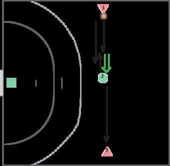 Playmaker og midterforsvarer bytter bold, så forsvareren bliver let distraheret. Playmakeren angriber nu mod midterforsvareren, som holder sin bold med to hænder foran kroppen, mens der dækkes op.