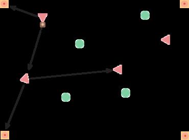 Angrebspillerne må kun aflevere til den spiller, der står ved siden af dem.