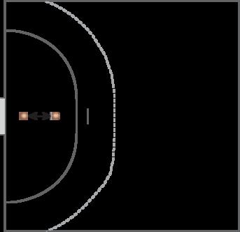 Spillerne er sammen parvis om én bold og starter, hvor midterlinje og sidelinje mødes Den ene har bolden og står på midterlinjen klar til at drible mod mål for at forsøge scoring. Makker tager opstilling som forsvarer ca to meter fra midterlinjen og placerer sig, så hun er klar til duel