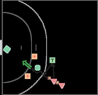 Forsvarsspiller har en afgrænset zone at forsvare Angriber afleverer til en tilspiller og modtager bolden i bevægelse mod mål Angriber har en åben udfordring med at løse udfordringen og kommer til afslutning indenfor den opsatte zone. Forslag til aktioner kan være følgende muligheder: