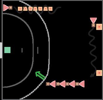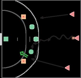 Midterforsvareren har et meget begrænset område at dække. Playmakeren angriber mod midterforsvareren og vælger en side. Playmakeren laver enten gennembrud eller spiller back, der arbejder med timing og gennemløb samt afslutning