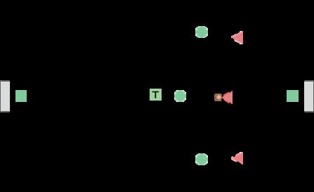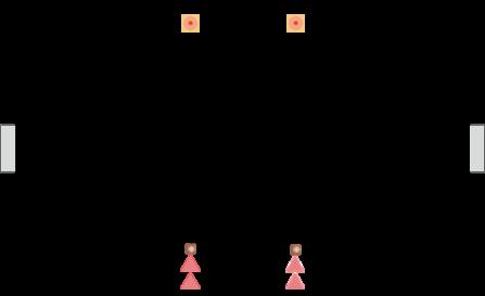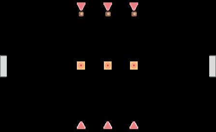 Der tages opstilling på tværs af hallen, så to spillere er tæt ved hver deres sidelinje, mens den tredje spiller er placeret i midten Spiller 1 ved den ene sidelinje har en bold og afleverer til spilleren i midten.
