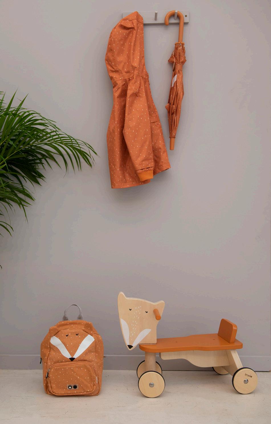 Foto rechts: trixie rugzak Mr. Fox, €39,95 - fiets Mr. Fox, €89,95 paraplu Mr. Fox, €19,95