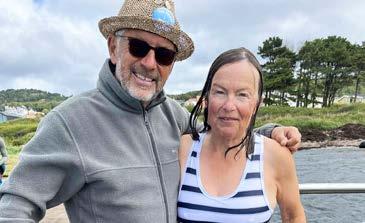 Camilla Bauer, en släkting till Sally Bauer var en av deltagarna som tog simborgarmärket i öppet vatten. Här tillsammans med badgeneral Stefan Bengtsson.