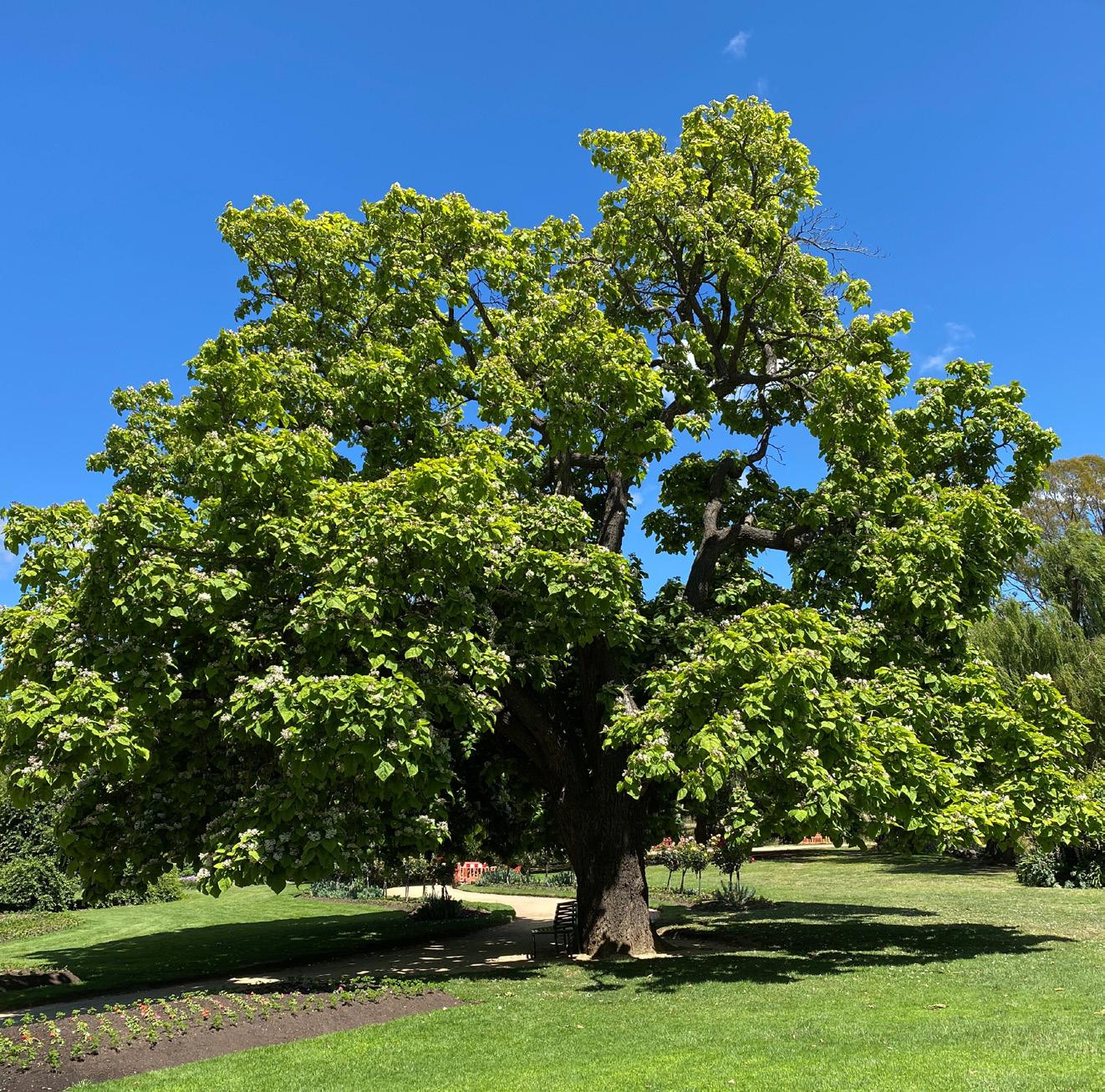 2. Catalpa bignonioides (Indian bean tree) is native to Southeastern USA and this truly magnificent tree growing in the Castlemaine Botanical Gardens (see image top right) may be the finest in Australia, let alone Victoria. It commands a view when entering the gardens through the entrance gates built in the 1870s - made locally at the Thompson & Co. Foundry over the railway line.