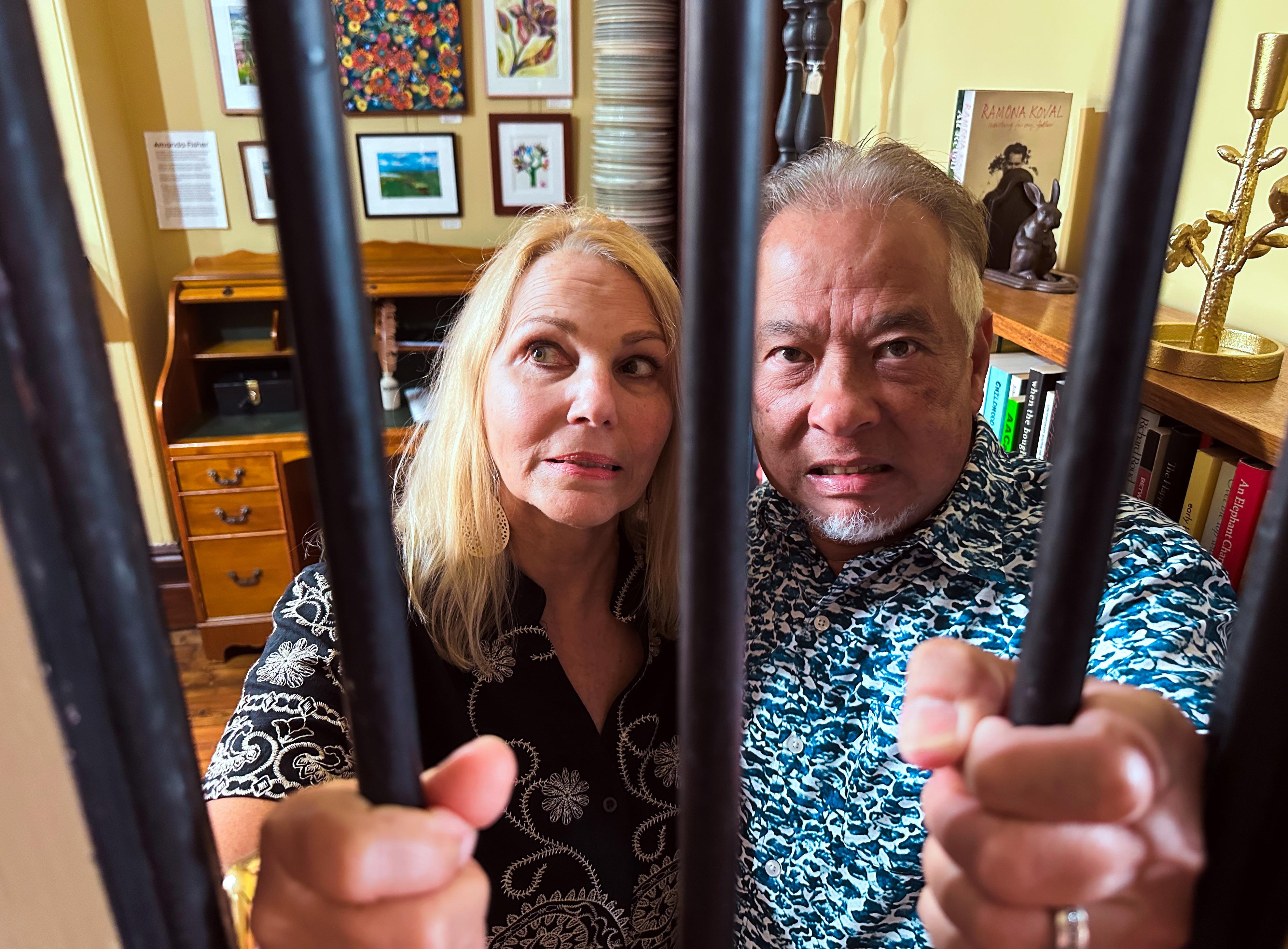 Above, Gold Coast visitors Tania and Phil just want out of the Escape Room Inset, BOOM Clunes manager Lois Nichols