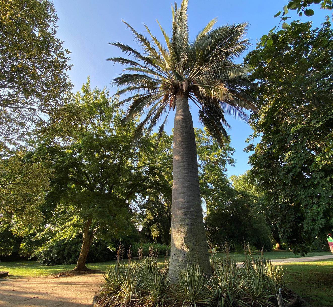 3. Jubaea chilensis (Chilean wine palm) growing in the Kyneton Botanic Gardens (see image middle right) is native to Central Chile (Valparaiso) and is also dominant in the landscape as you enter the gardens through the iron gates built in 1936. Other fine examples may be found at the Royal Botanic Gardens, Melbourne and Queen Victoria Gardens, Bendigo.