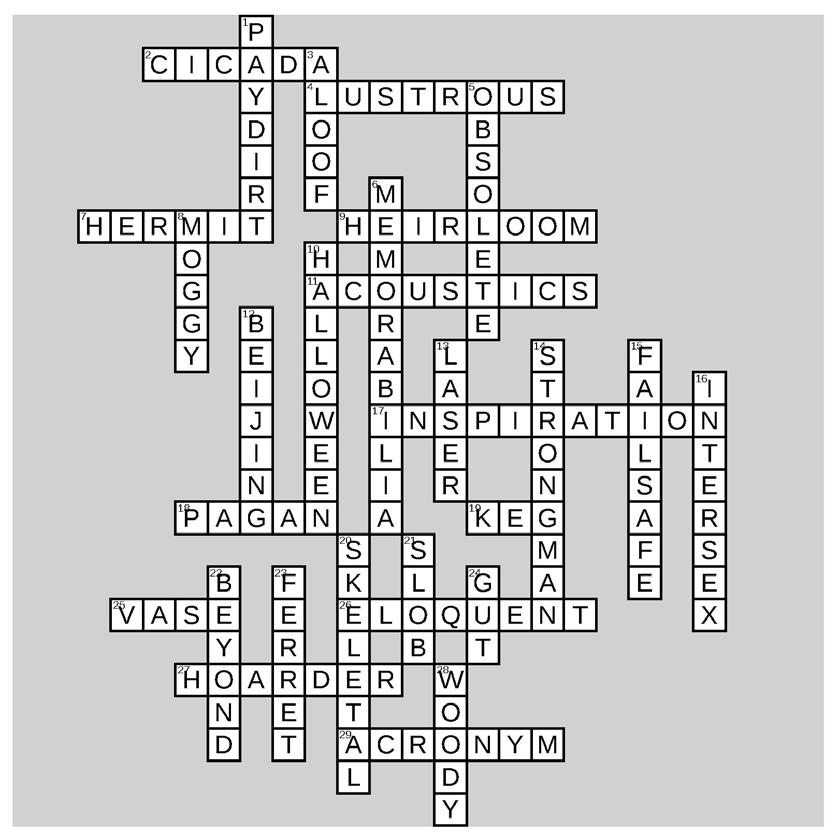 Here is the solution to crossword for edition 266. Each edition, all the words appear in that edition somewhere. How did you go?