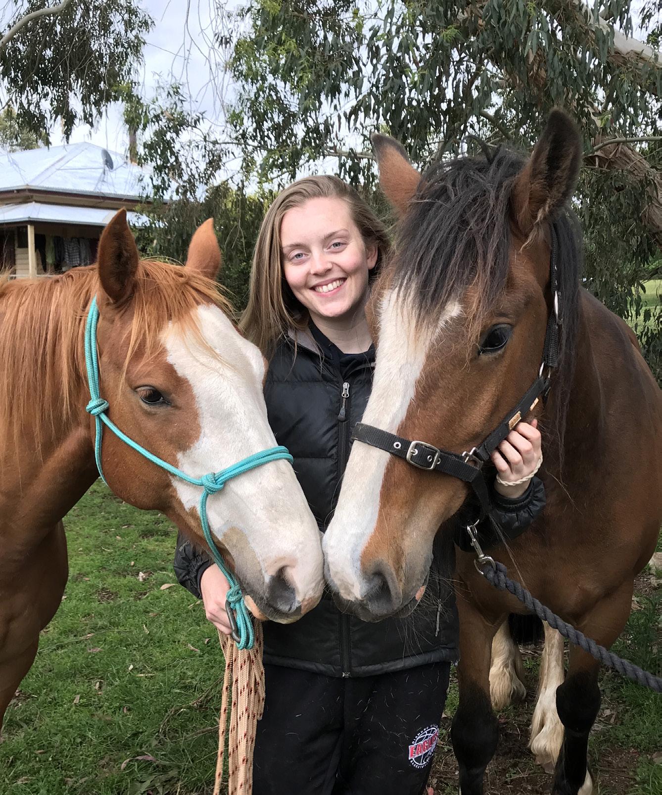 local Abigail (Abbey) Wehrung loves where she lives on the fringes of the Wombat Forest. Surrounded by her menagerie of animals including nine horses, dogs, chooks and a goat, she knows there is no place like home.